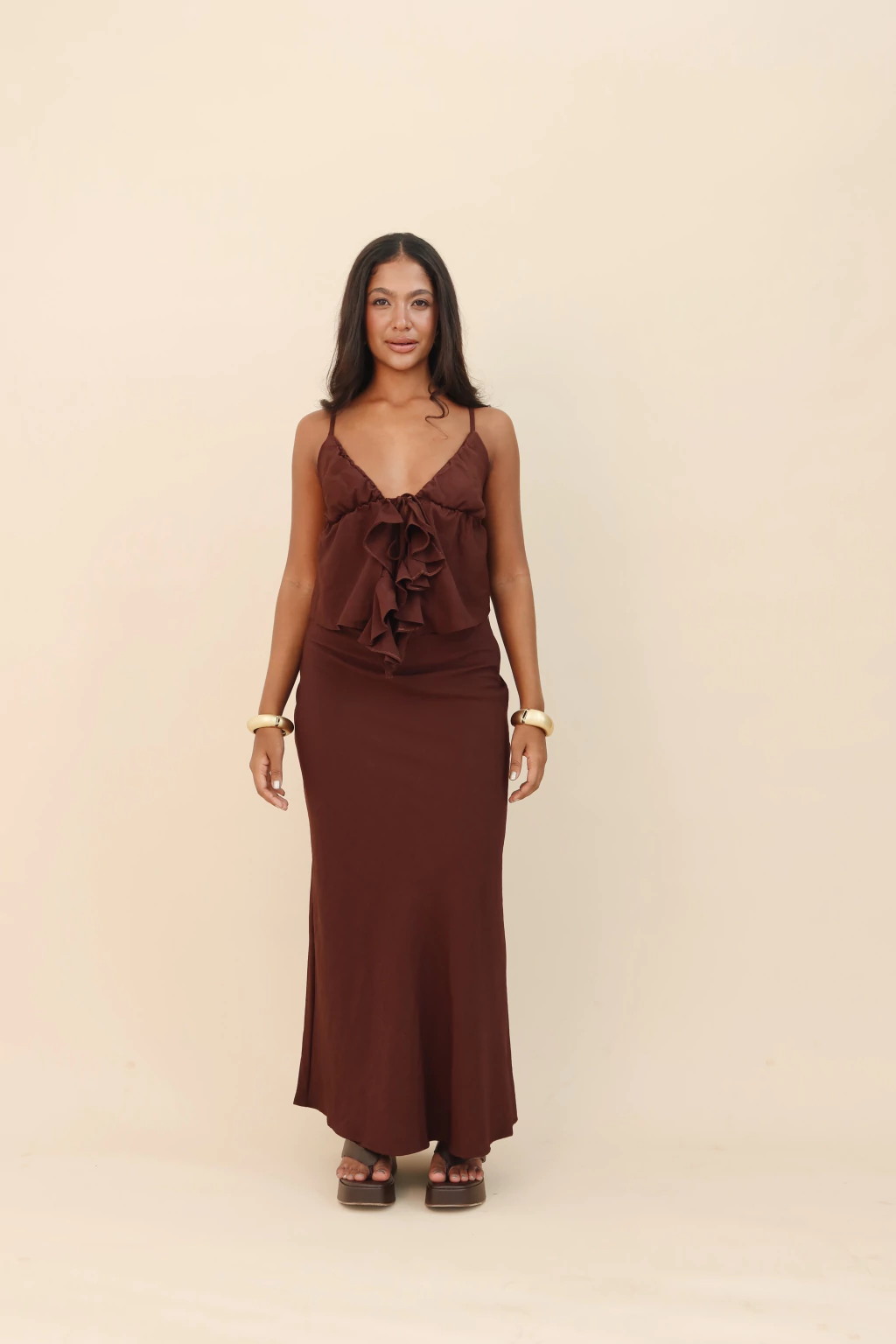 Descubra a BLUSA LUA, a peça que eleva seu estilo com uma perfeita combinação à saia lua em tecido alfaiataria Marant. Confeccionada com alta qualidade, apresenta delicados babados frontais e uma charmosa amarração em laço na frente que valoriza o decote. O elástico na parte de trás garante conforto e ajuste perfeito.
