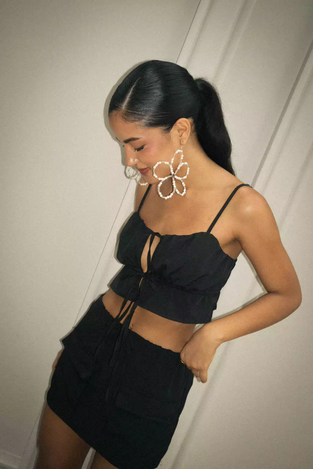 Conjunto Tasha, nosso lindo conjunto da blusa mais amada da estação + mini saia com amarração na cintura.